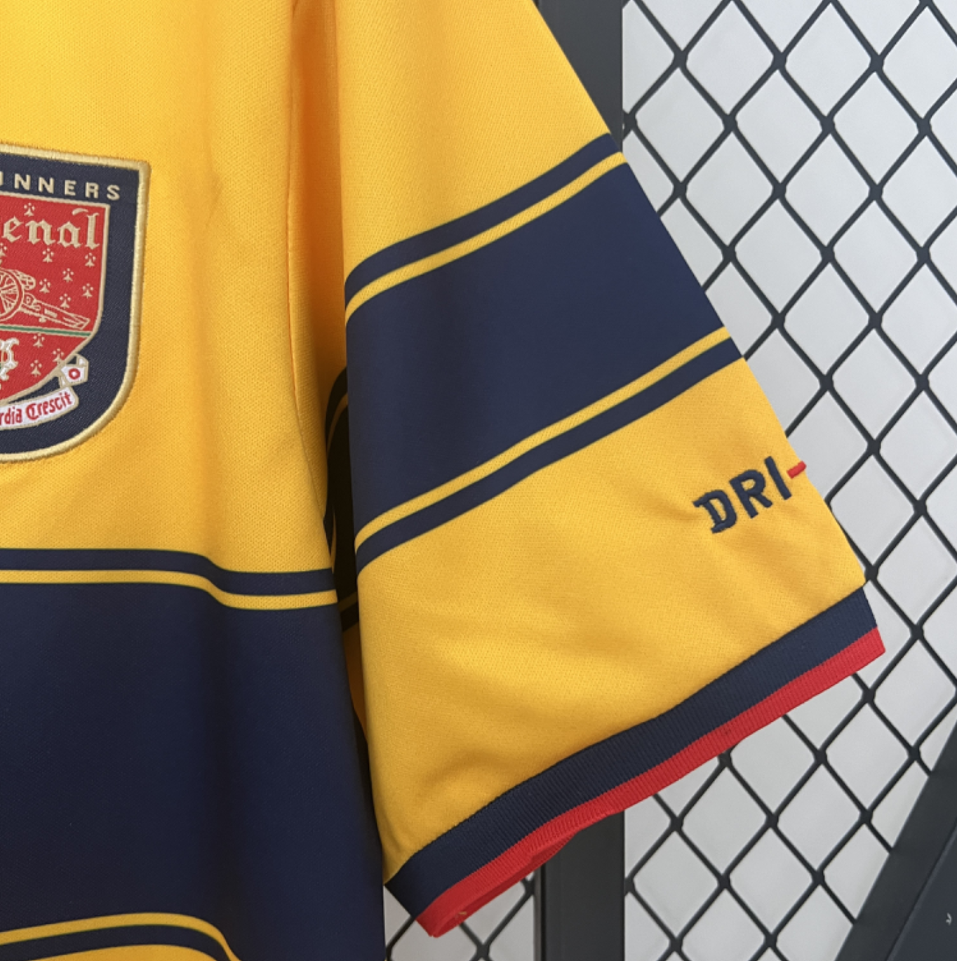 Relive the glory of Arsenal’s late ’90s dominance with the Retro 97/99 Away Kit. This bold yellow and blue jersey, famously worn during the Gunners’ double-winning season, is a true collector’s item. Made with premium materials, it offers both comfort and durability, perfect for showing your support on match day or adding to your football memorabilia. Celebrate Arsenal’s rich history with this iconic piece of football heritage.